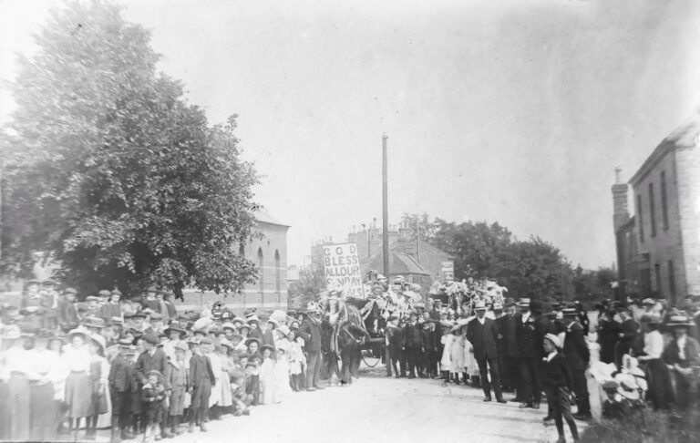 This photo (courtesy of Chris Clark) is annotated ‘1897 Diamond Jubilee?’ Suggesting it depicts celebrations in Gosberton to commemorate the 60th anniversary of Queen Victoria’s reign. I’m not so sure. The big sign stating ‘God Bless All Our Sunday Schools’ doesn’t seem appropriate. Plus, where are the flags and banners?