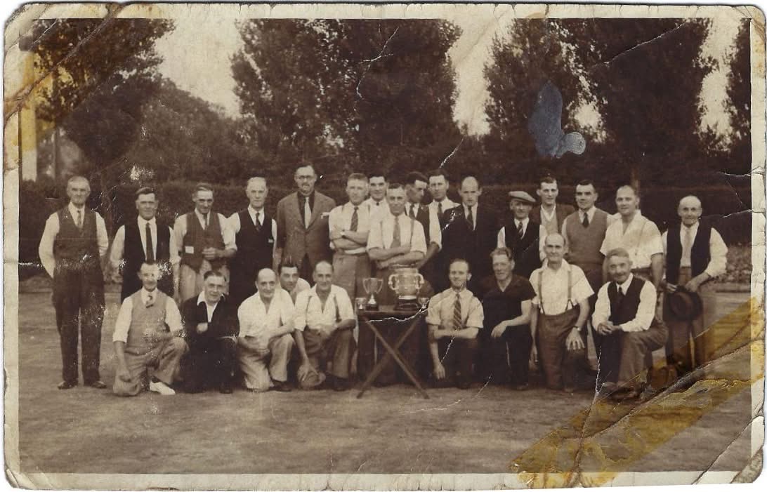 He found out that my dad was in the photo who had passed away a year after the photo was taken and asked if I would like the photo, hence it is now in my possession. If there was a local museum for Spalding and district Sports teams I would gladly pass it on to them. I can put a name to most of the people in the photo except the Carters Park players other than Ted Seymour. Ernie Powell is front centre behind the Trophy.