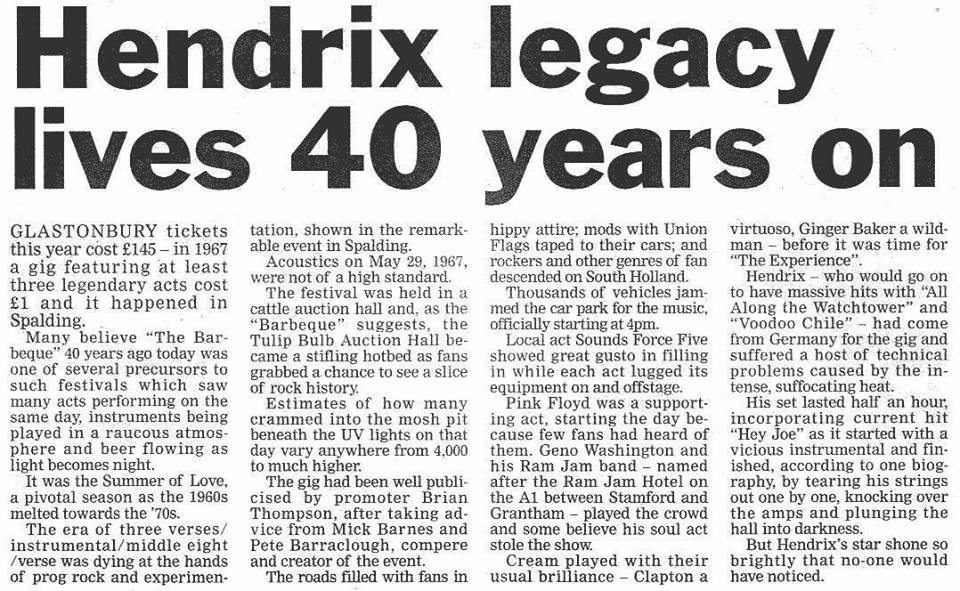 A collection of adverts and information about the Jimmy Hendrix visit to Splading. Does anybody have any pictures of the event?
