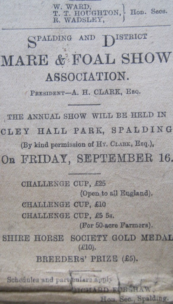Advert for the Spalding & District Mare and Foal Show 1904