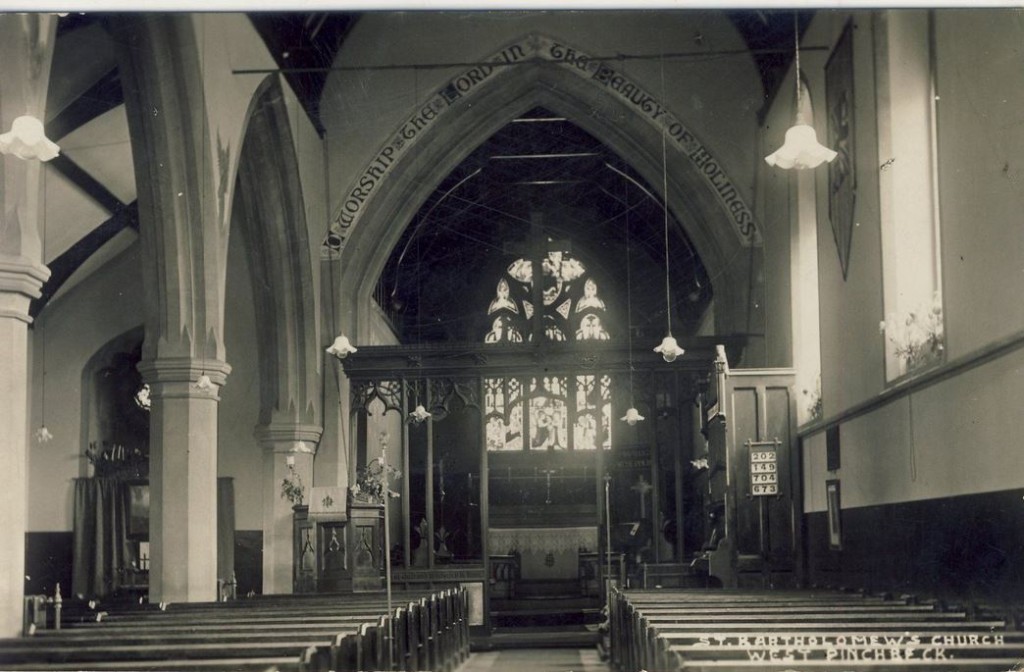 Interior of West Pinchbeck Church pre-1940