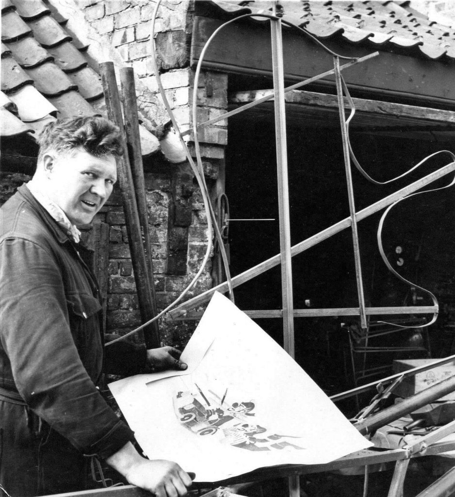 Geoff Dodd building one of the first Flower Parade Floats
